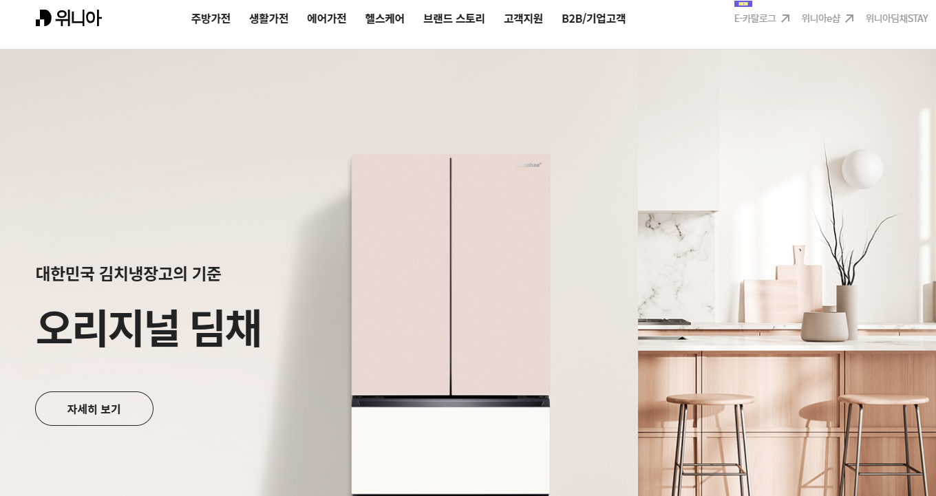 위니아, 딤채, 딤채쿡, 클라쎄 브랜드와 주방가전, 생활가전, 에어가전 등 다양한 제품 정보 제공